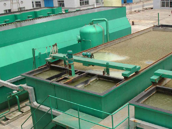 (4) 二沉池:生化后的污水進入二沉池,二沉池設(shè)計表面負荷0.9-1.2m3/m2.d二沉水槽為升降式可調(diào)液位,齒形集水槽,其槽集水均勻沉淀效果較好,二沉的污泥氣提至污泥池。